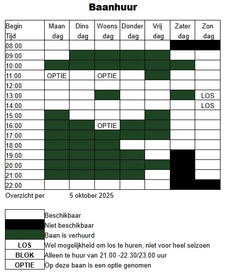 If you want security and want to play tennis with a group every week at a fixed day and time you can reserve a tennis court with us for the entire winter season.
